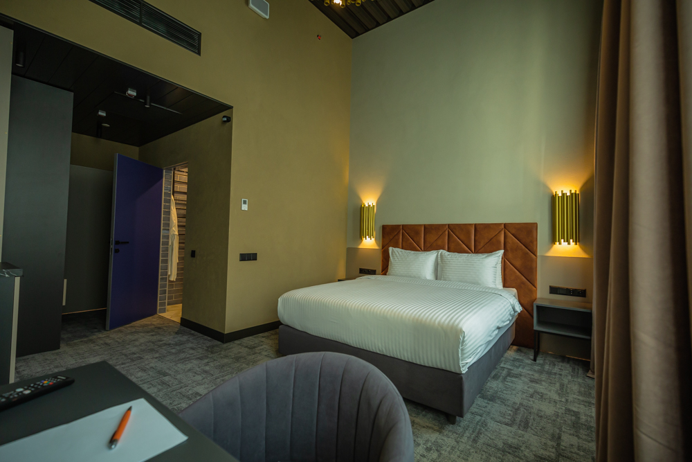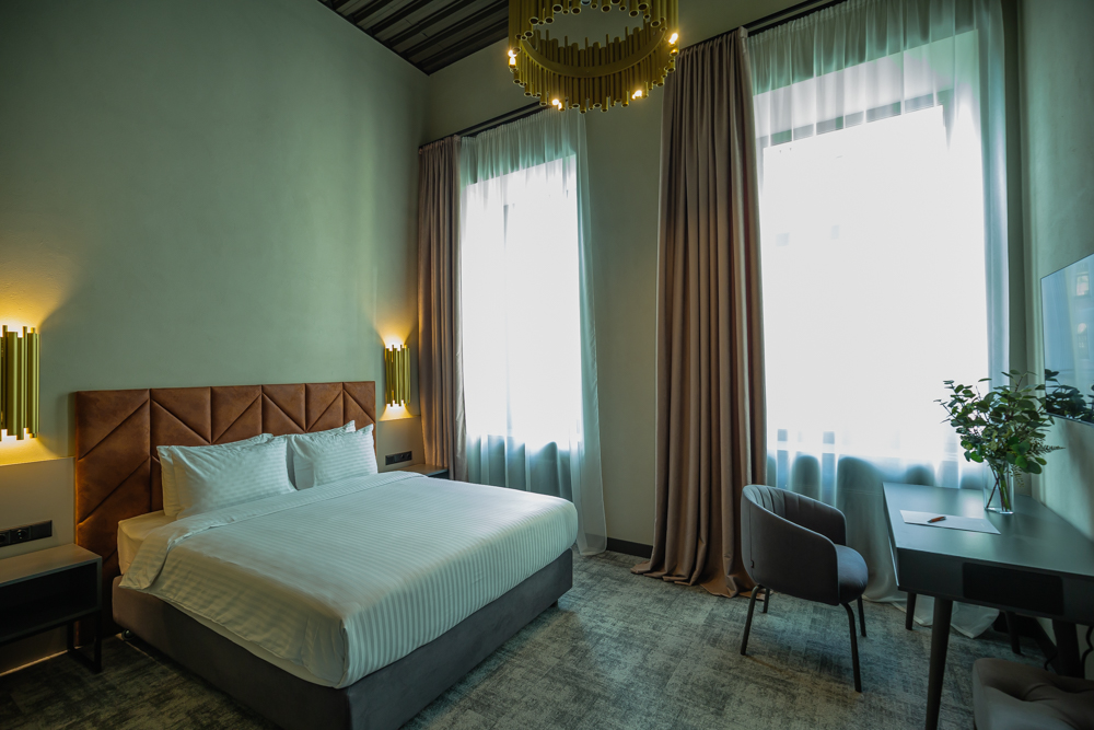 Элегантный номер, идеальный для непродолжительного пребывания в столице. Наслаждайтесь утренним кофе на балконе, созерцая величественный дух старого города. А после дня, насыщенного событиями, отдыхайте с бокалом вина на удобной кровати 1,6*2м