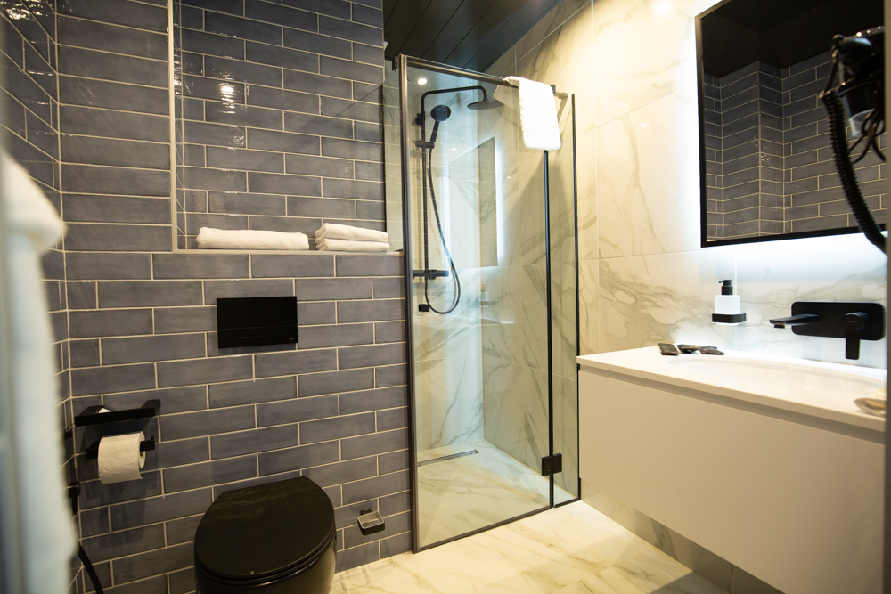 Ванная комната с просторной душевой кабиной выглядит стильно и современно. А главное, в номере есть все, чтобы полноценно насладиться отдыхом
